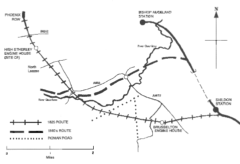As there was very little earthwork on the eastern side of the Brusselton incline, the line has mostly disappeared. It is not marked on the latest 05 93 map (but it may be marked on earlier editions), however, the museum at Shildon was very helpful. A half-mile south of the Roman junction, at 257206, the incline crosses Dere Street.